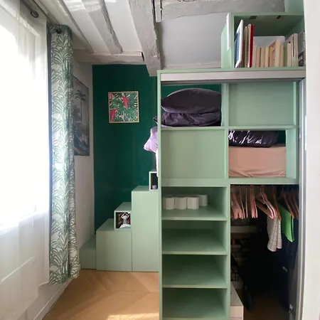 The 35 ft² Appartement Cosy A Saint Michel-Notre Dame Paris Center is located 0.3 miles from Saint-Michel Notre-Dame train station and around 5 minutes' walk from Love Lock Bridge Paris.